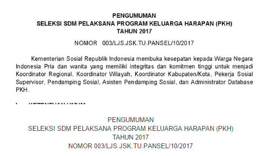 SELEKSI SDM PELAKSANA PROGRAM KELUARGA HARAPAN (PKH)